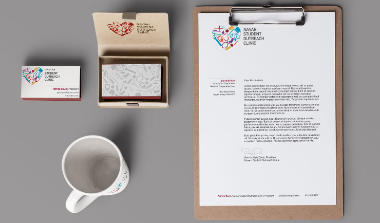 Branded materials for the Navari Student Outreach Clinic to reach out to prospective donors