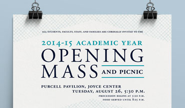 Poster to welcome faculty, staff, and students to the Opening Mass for the 2014-2015 Academic Year