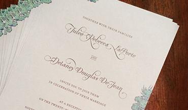 Hand-lettered save the date cards and invitation package for Patrick + Marie's wedding letterpressed by Rohner Letterpress, Chicago, evelope calligraphy by Mary Catherine Dunphy, and photographed by Catherine Guidry